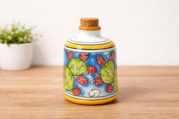 Wykonane z wysokiej jakości szkliwionej ceramiki, naturalnie chronią oliwę przed światłem, pomagając zachować jej świeżość, aromat i charakter. To połączenie funkcjonalności i estetyki, które od wieków jest obecne w sycylijskich domach.