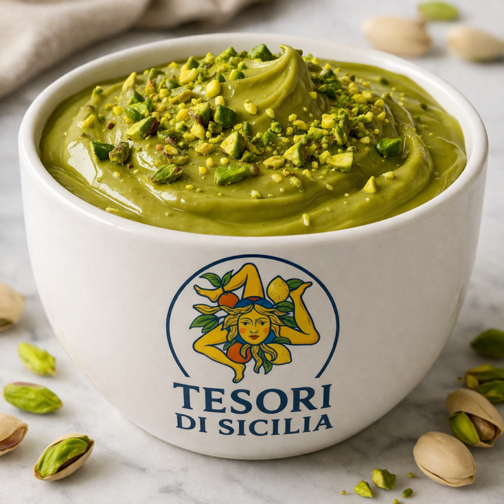 Dodaje się je do chrupiących cannoli, posypuje nimi lody i tworzy aksamitne kremy pistacjowe do croissantów oraz deserów. Równie zachwycają w kuchni wytrawnej — pesto pistacjowe z makaronem, często podawane z krewetkami lub guanciale, to jedno z najbardziej charakterystycznych dań Sycylii, które na nowo definiuje smak pistacji.